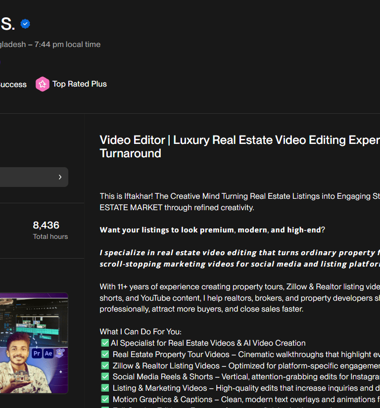 Open for real estate projects, creative collaborations & high-end luxury video editing work.